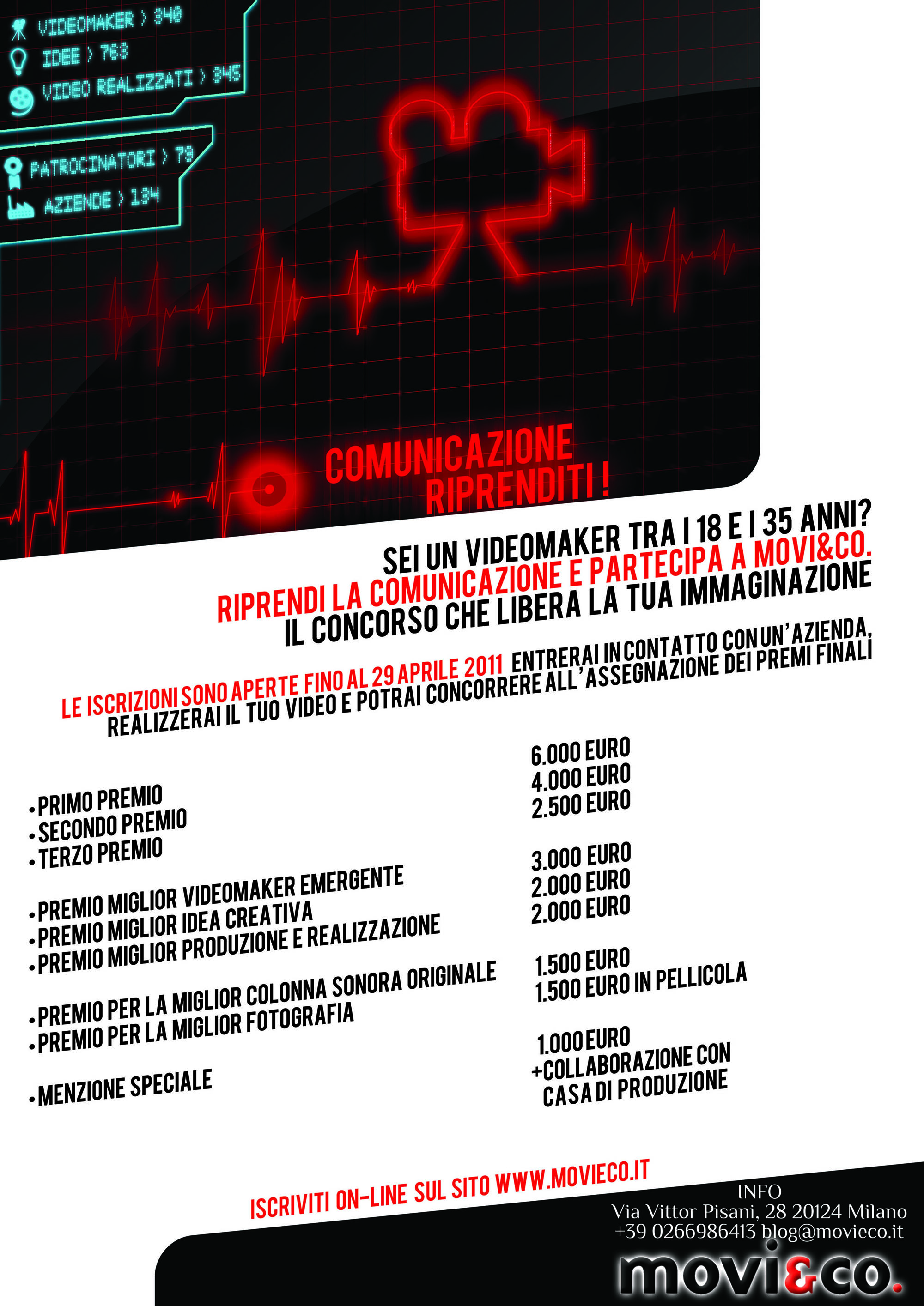 Se sei un videomaker fra i 18 e i 35 anni partecipa a movi&co, metti in gioco la tua creatività, incontra un’azienda e realizza un video, in palio 22.000 euro diviso nei seguenti premi: